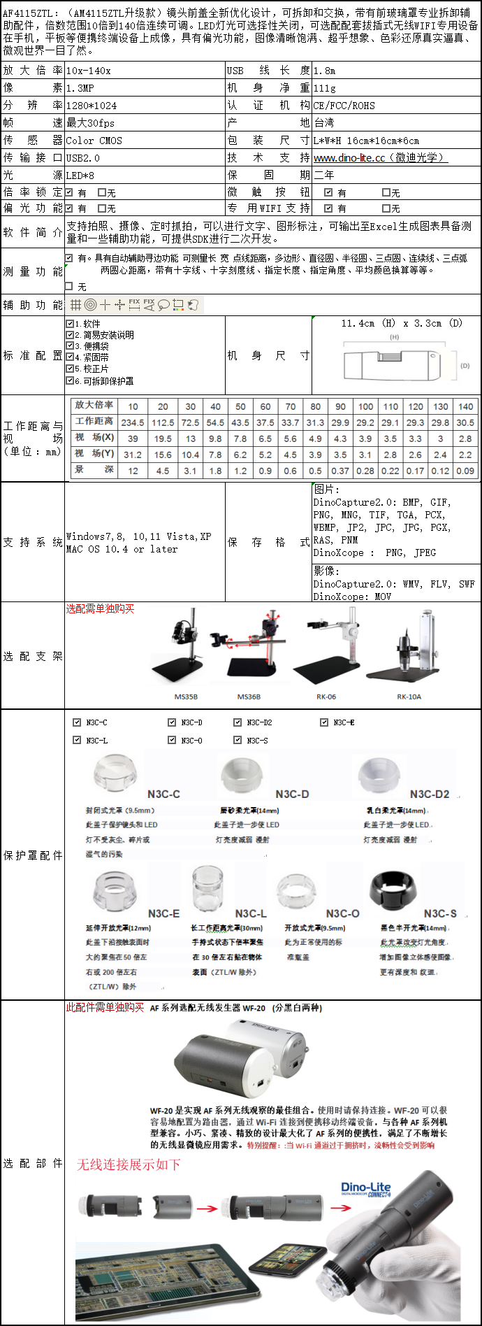 | AF4535ZTE | 130萬 | 1280 x 960 | 10X-330X | 8 | 有 | 有 | 有 | WF-21 | 有 | 無 |